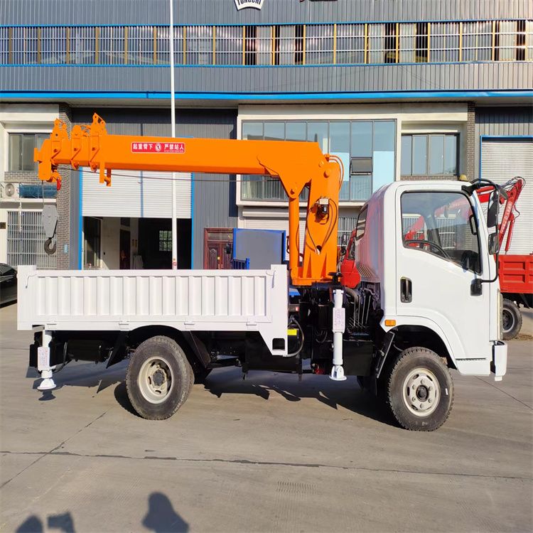 磐石市重汽豪曼小型四吨直臂蓝牌随车吊厂家 起重机价格